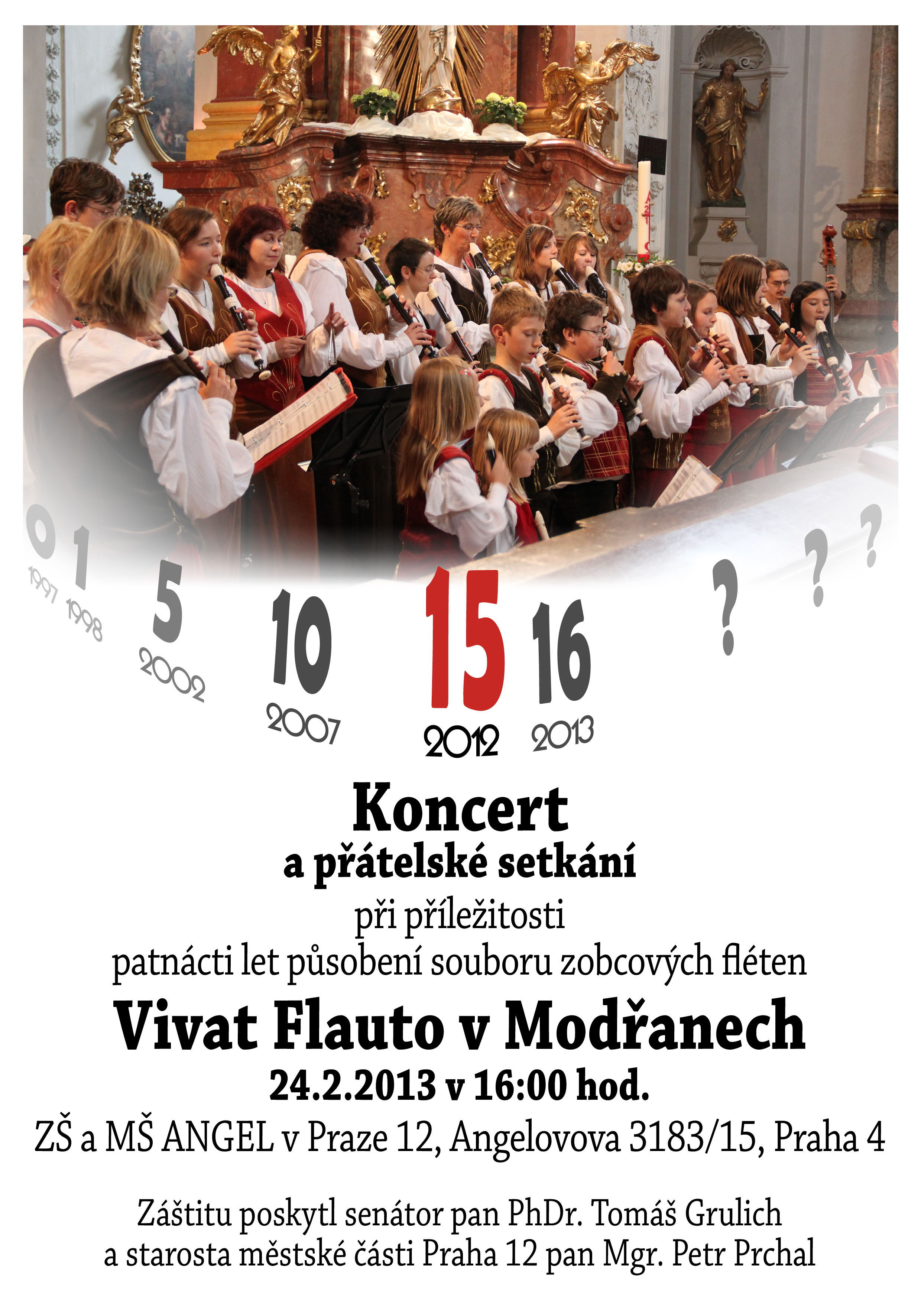 Slavnostní koncert a oslava výročí 15 let působení souborů zobcových fléten v Modřanech.