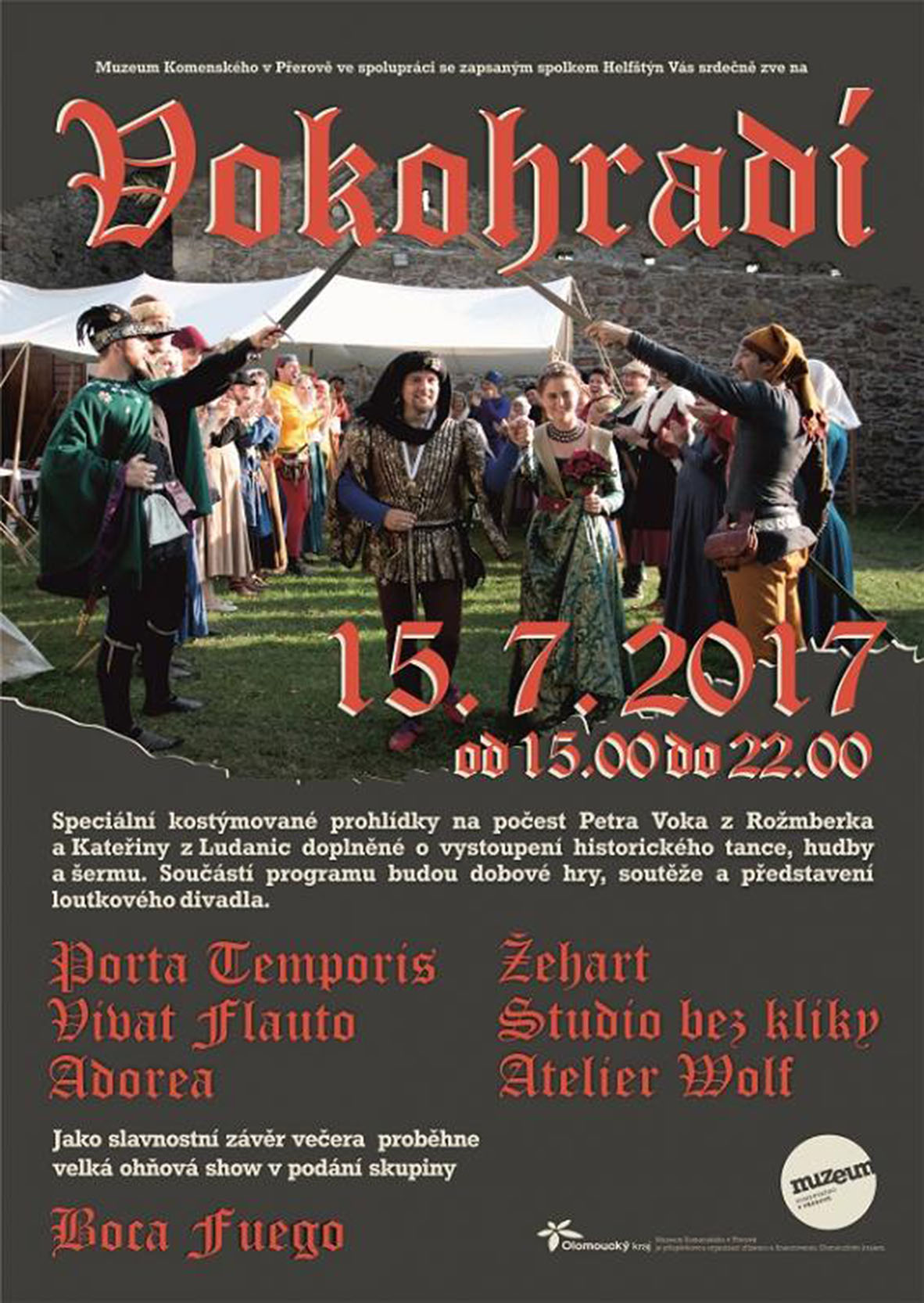 Trio hráčů ze souboru Flauto Giubiloso bude po celý den doprovázet historickými skladbami akci hradu Helfštýna. Akce s názvem Vokohradí připomíná období, kdy hrad vlastnil Petr Vok z Rožmberka.