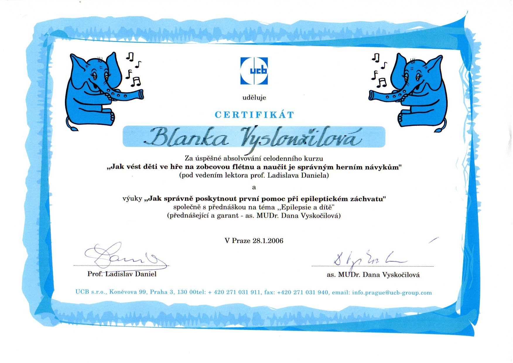 Kurz společnosti UCB – prof. Ladislav Daniel a MUDr. Dana Vyskočilová, Praha 2006