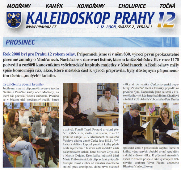 V přehledu událostí na území městské části Praha 12 za rok 2008 se soubory objevily hned dvakrát - v lednu a v prosinci