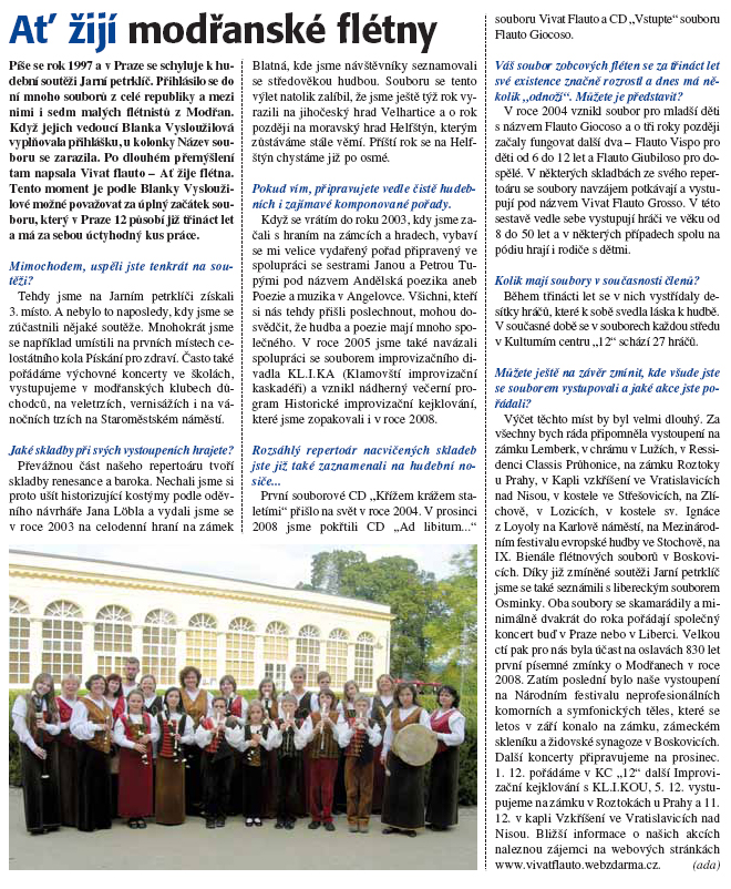 Profilový článek o modřanských souborech zobcových fléten v rozhovoru s vedoucí souborů