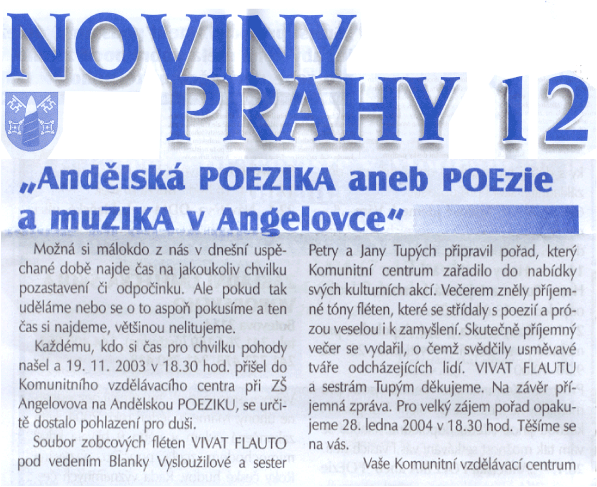 Recenze k pořadu připravenému souborem Vivat Flauto spolu s recitátorkami Petrou a Janou Tupými