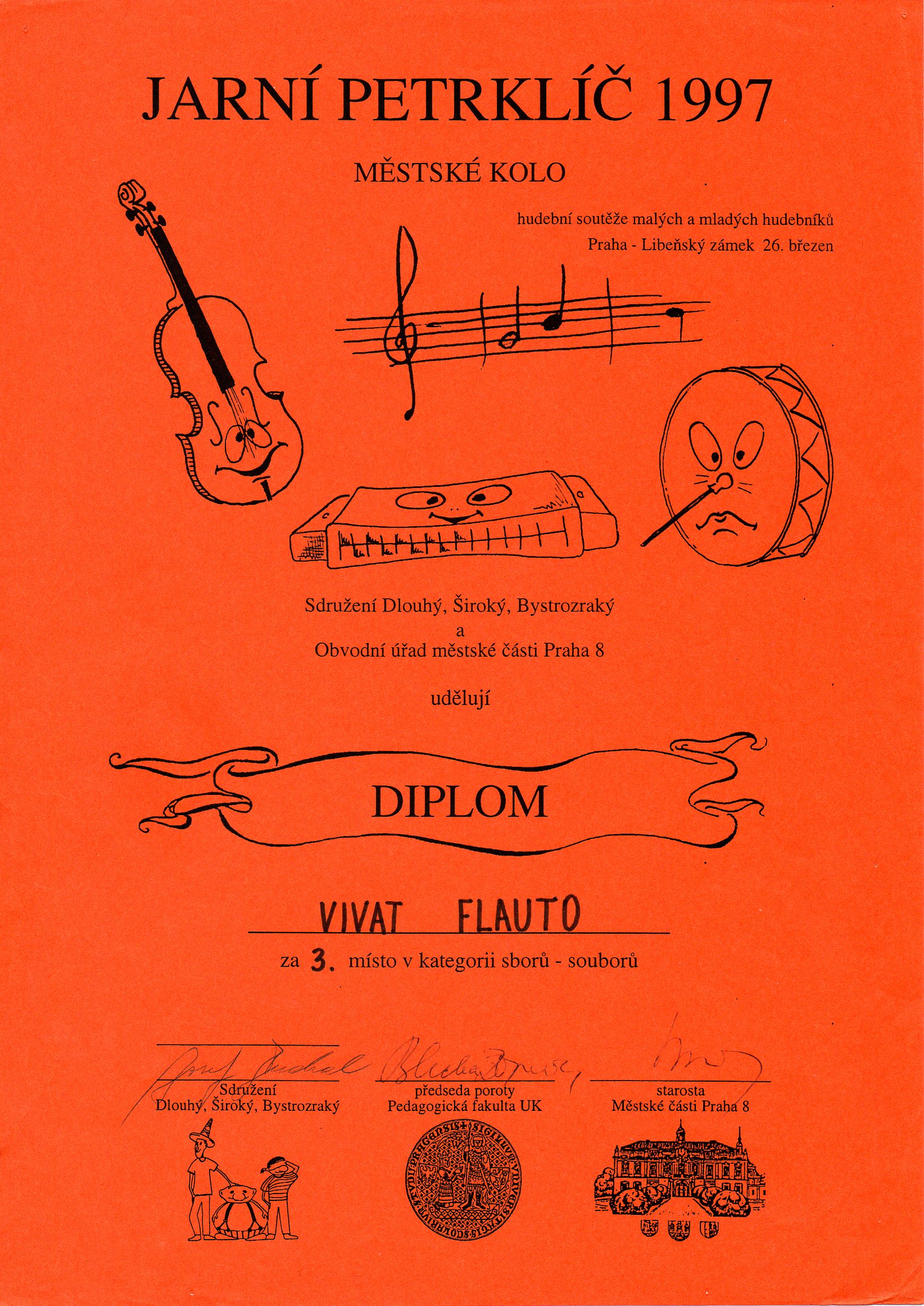 Participation of the ensemble Vivat Flauto in the competition for little and young musicians organized by an association Dlouhý, Široký, Bystrozraký [Long, Wide, Clear-sighted]
