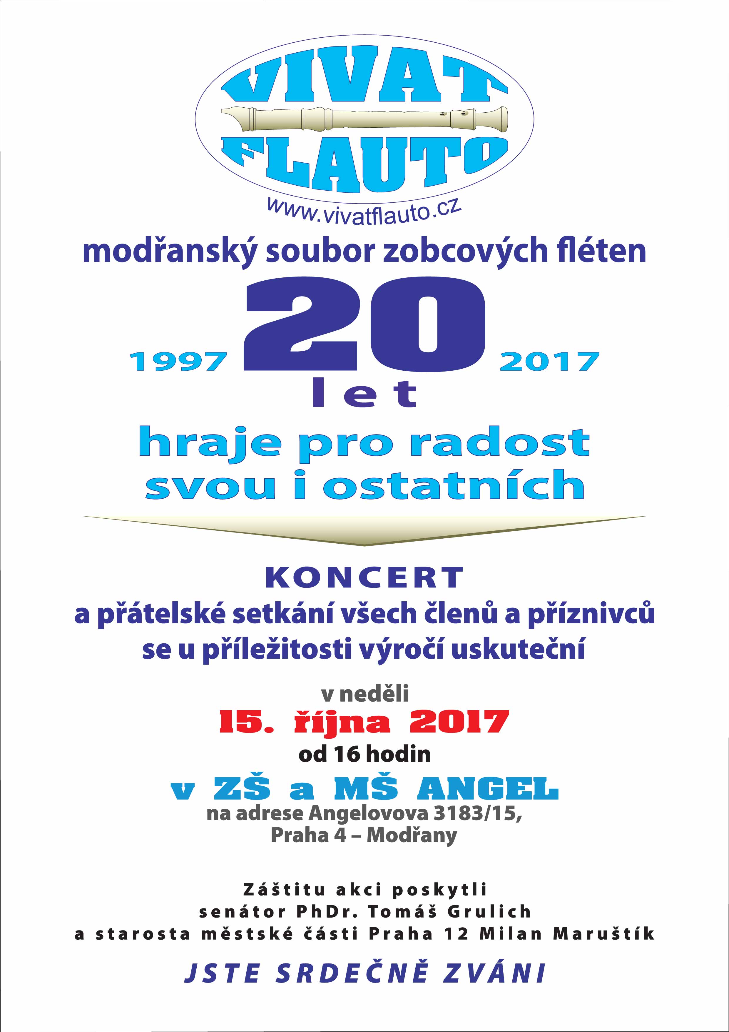 Slavnostní koncert souboru Vivat Flauto a jeho hostů na oslavě výročí 20 let působení souborů zobcových fléten v Modřanech