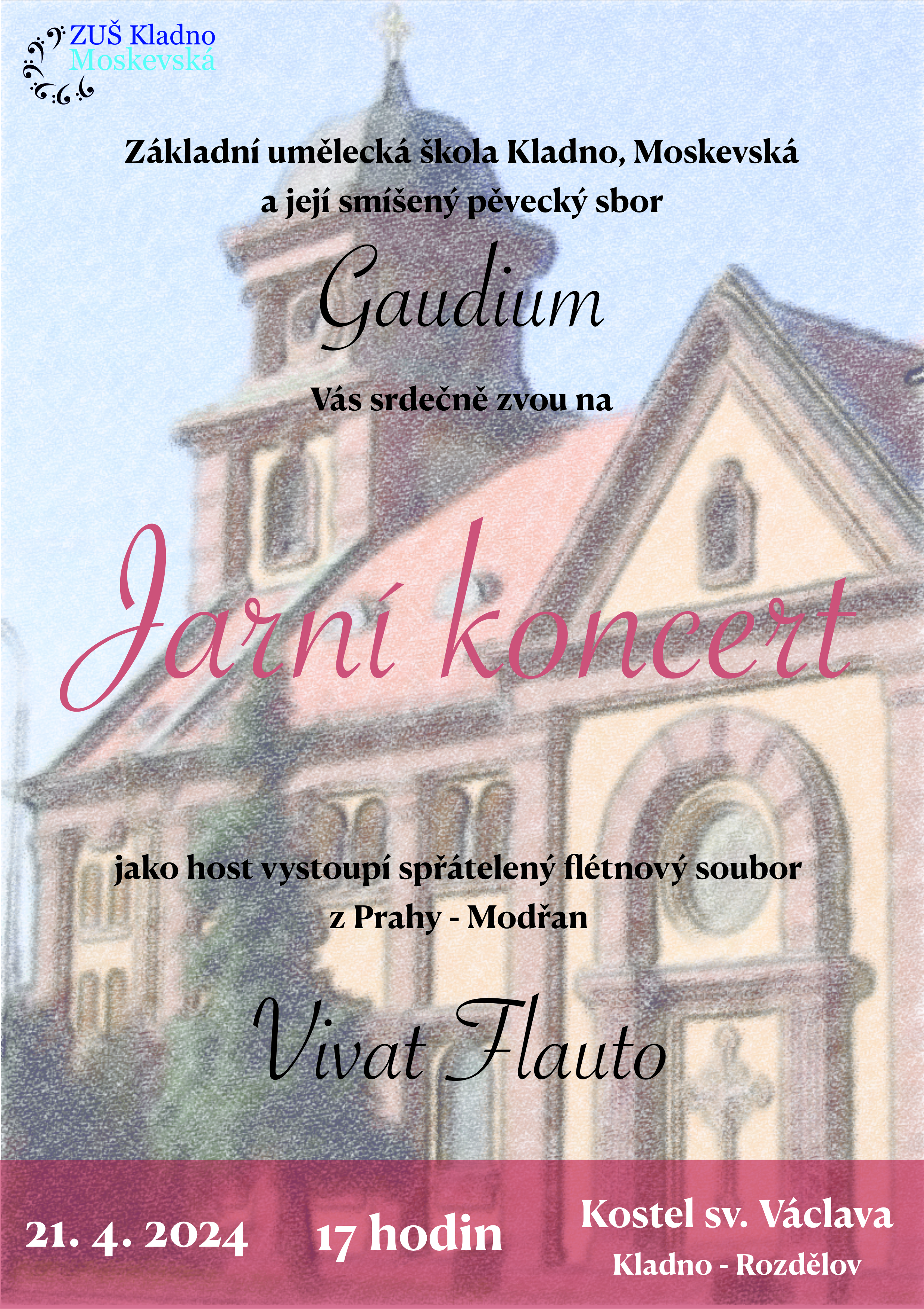Soubor Vivat Flauto vystoupí jako host na koncertě pořádaném smíšeným pěveckým sborem Gaudium ze ZUŠ Kladno, Moskevská.