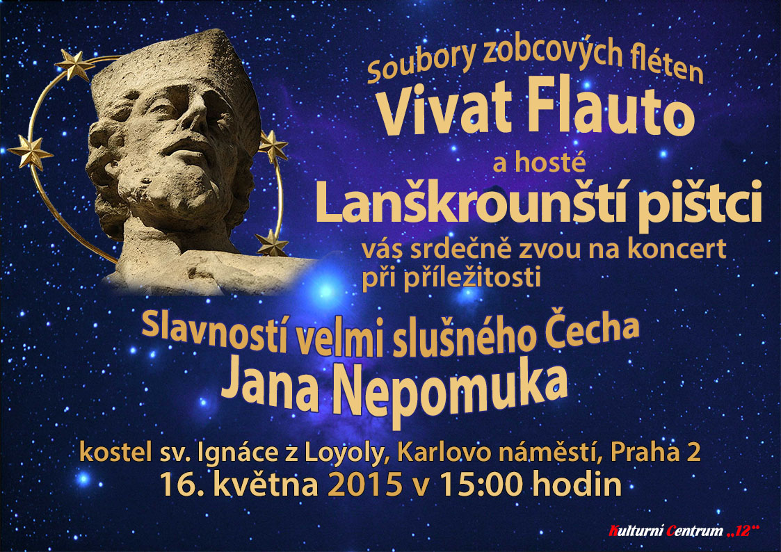 Soubor Vivat Flauto vystoupí v kostele sv. Ignáce z Loyoly při příležitosti Slavností velmi slušného Čecha Jana z Nepomuku. Hosty bude tentokrát soubor zobcových fléten Lanškrounští pištci.