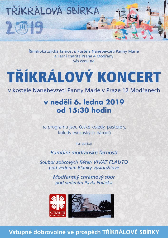 Soubor Vivat Flauto zahraje koledy při ukončení Tříkrálové sbírky v modřanském kostele Nanebevzetí Panny Marie.